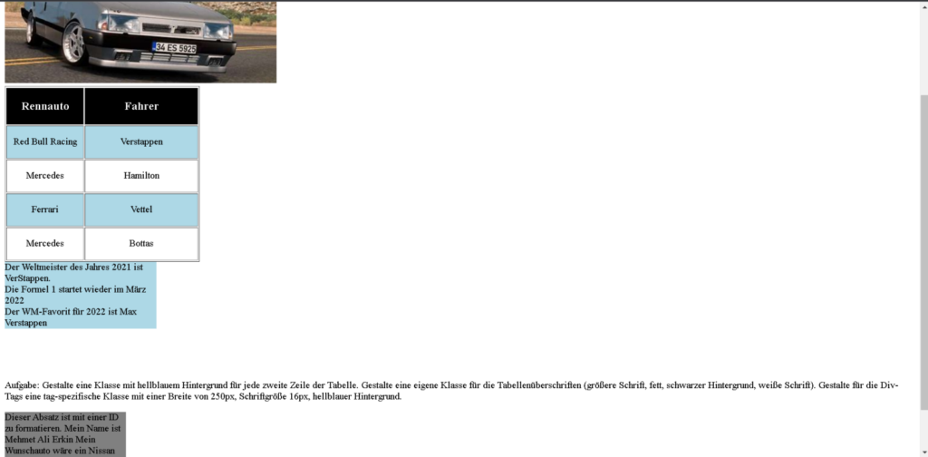 Durch diese Aufgabe habe ich gelernt, wie man grundlegende HTML-Tabellen aufbaut, Bilder korrekt einbindet und Hyperlinks benutzerfreundlich gestaltet.
